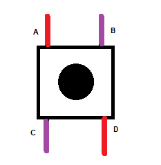 If you press down on the button, it will connect the 2 red legs and the 2 purple legs.